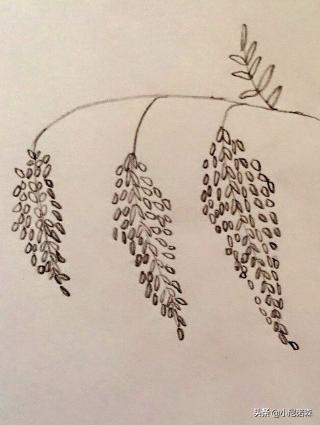 1、画出紫藤的一根枝条,要呈现弯状,有种被风轻轻吹弯的感觉。