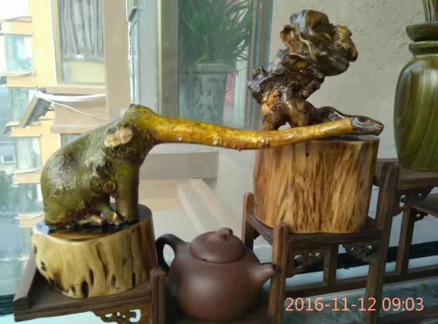 根雕应该是分两类,一类是小的摆件或花架之类的。另一类是大的根雕茶台类的。